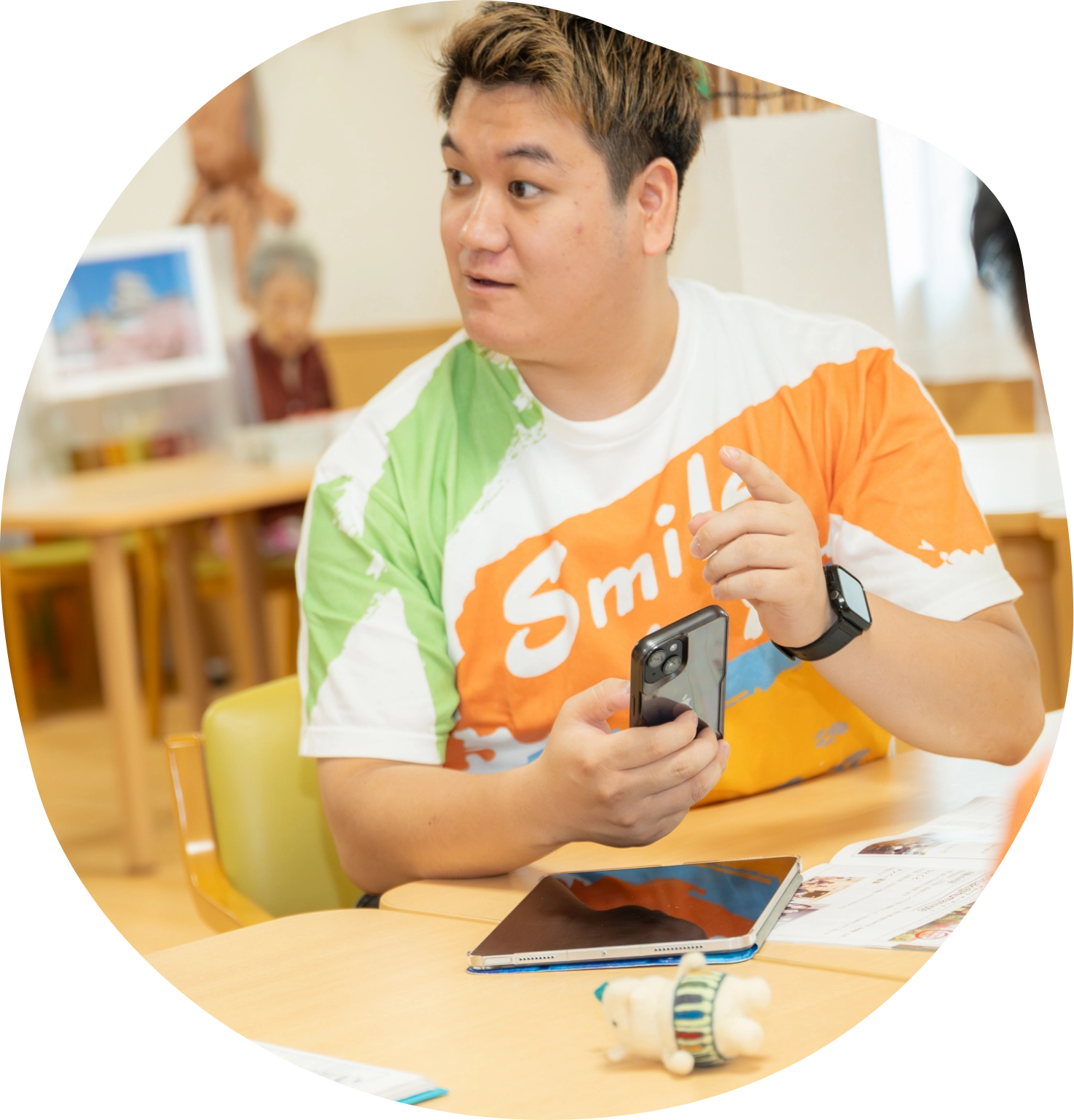 利用者様のお部屋に伺い、日常生活のサポートやレクリエーション、健康体操などを行っています。